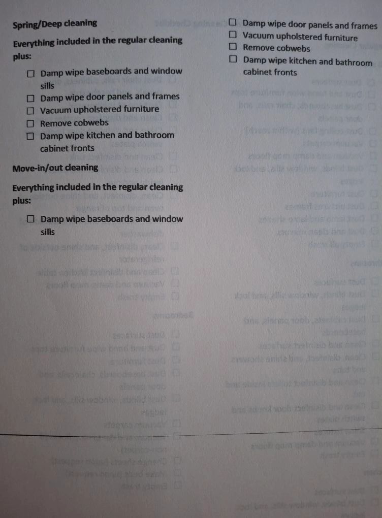 Rescheduling and Cancellations: This Agreement allows for the Client to reschedule with no charge, if Client notifies Service Provider 72 hours prior to scheduled service AND reschedules new service date at the same time. Any rescheduling in less then 72 hour prior notice will be charged for full Compensation for scheduled service's. Any Deep Clean service must be rescheduled 7 days prior to scheduled service to receive no additional charge. Any Deep Clean service rescheduled in less then 7 days will be charged $200.00 and/or loss of any deposit. All Cancellations made after Agreement is signed or service is scheduled will be charged for full compensation. Client agrees to pay full compensation for any service scheduled upon any cancellation. Any cancellation to Deep Clean service will be charged and pay Additional $400.00, for lost appointment